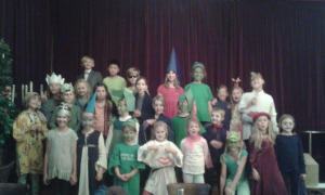 Der Grundschulchor des Evangelischen Schulzentrums hat viele Wochen das Musical „Der rostige Ritter“ geprobt. Dabei wurde das Stück zunächst musikalisch und dann szenisch erarbeitet. Großen Spass machte den Schülern die gemeinsame choreografische Gestaltung einzelner Szenen. Nach den Sommerferien wurden Requisiten, Kostüme und das Bühnenbild ( unter anderem gestaltet von der 3a ) hergestellt. Vor der Aufführung im Oktober kam schließlich zu den letzten Proben unser Pianist dazu. Die Proben und Aufführungen waren für die Kinder eine sehr bereichernde Zeit, in der erste Erfahrungen im Solosingen und Schauspiel gemacht werden konnten.
